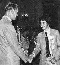 Mr. Charlton congratulating Colin Caldwell (1976).